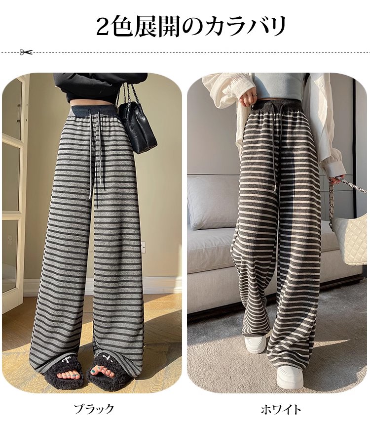 ナチュラルな雰囲気のボーダー柄ワイドパンツ